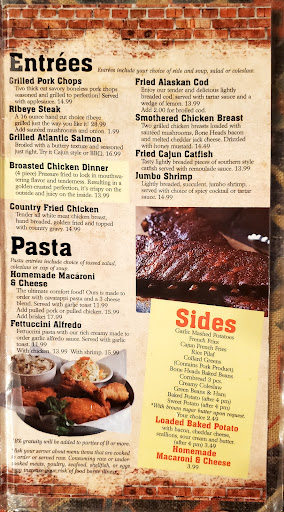 Used to be one of our favorite places to eat until our last visit. Our waitress had to many smoke breaks, we had to ask other waitresses for drinks. When our appetizers came it appeared that our 2 orders of pickle chips became one order split between two plates. We ordered another just to see if there was a difference. Sure enough, there was. When the food came out, one of our party received corn bread that was burnt black. Everyone commented on how this person wasnt going to eat that. Didnt phase the waitress at all. Then my beer battered fish came. Painfully obvious that it had been fried, then re fried to a dark hardened mass and then to boot, it was cold. Waitress came back after another smoke break and asked it everything was alright. I replied, "I need some fish that hasnt been re fried and is a least room temperature if hot isnt an option and we need a piece of corn bread that is edible. We wont be going back anytime soon.