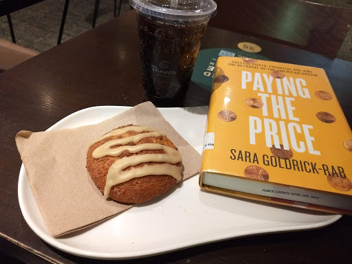 Not the Panera I used to love. Good news first, the counter lady was nice. But; the scone was not baked crispy but was doughy, 3 of the 4 coffee carafes were empty, no music anymore ( you used to have great classical and jazz). So far youve got the market but If theres money out there youre ripe for competition.