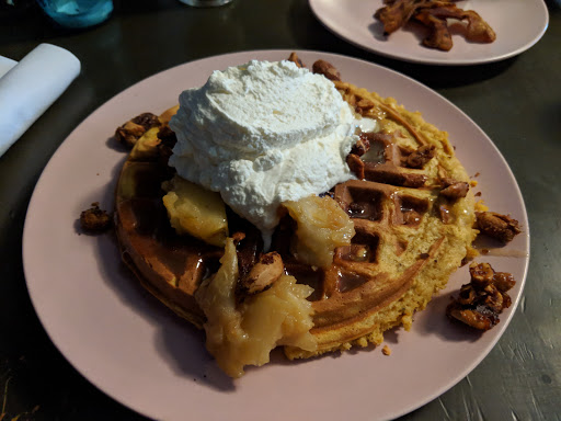 I LOVE the rebooted Ollies!! 5 star food, staff and atmosphere. Amazing themed Sunday brunches, highly recommended! My only ding is that there was a little bit of a wait for the bathroom, as they are shared with Cream and Crumb and both were busy today.