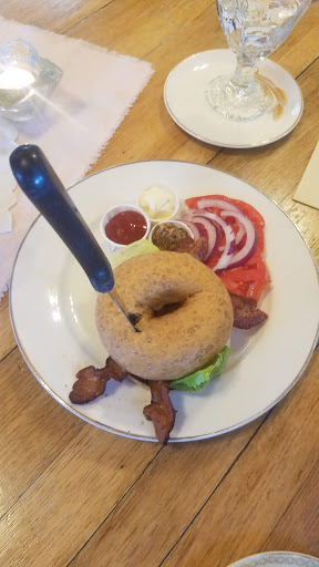 Quaint establishment & homemade, organic, and local ( as much as possible) food. I love the raspberry salad pita. Their red cow burger is OK but Ive always found it to be too pinky red inside for my liking. Ask to have the home made sticky buns sliced in 1/2 (like hamburger buns) buttered and grilled. Way yummy!!!!;
