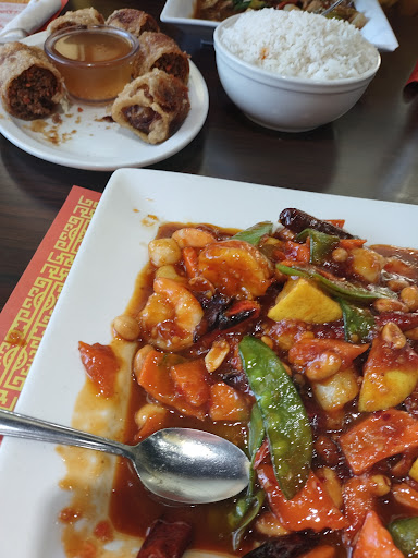 The egg rolls are good and they are huge. All meat. I like the dipping sauce/juice they come with too. They are not like a typical egg roll you would get somewhere else. You get two in an order and can be FULL just from those. We order for pick up and usually get the sesame chicken. It took a while but we learned if you order it with the sauce on the side they will come out cripsy (how we like it.) Otherwise the breaded chicken is soggy and therefore, not very good. Occasionally I get the walnut shrimp and let me tell you... it is to DIE for! This is one GREAT thing on their menu (I say this because I havent tried many things.) It is a little more pricey than the other menu items (around $12-13) but SOO worth it. And it is enough for two people I believe. We always order the pork fried rice and sometimes It has too many big onion chunks and is a bit too salty (not sure why we get it each and every time with that being said.) The people who work at the counter that take and get your order ready to go are extremely personable and friendly... we ate in "once" and had probably the most unfriendly waitress Ive ever had the displeasure of being served by. I dont know, maybe she was related to the owner? I do think you get more food when you eat in.. but id rather take it home and not deal with the attitude.