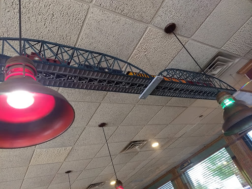 The train here is fun for the kids, but the name is a bit misleading, even if unintentionally so: this pizza is as far from the New York style youd find on Broadway as you can get. Service was slow and poor the few times we gave it a try, to the point of making us wait 30 minutes for our food, then bringing us a BBQ pizza instead of a Buffalo pizza. The one positive is that I hope it inspires other, better restaurants to install fun trains for kids to look at!