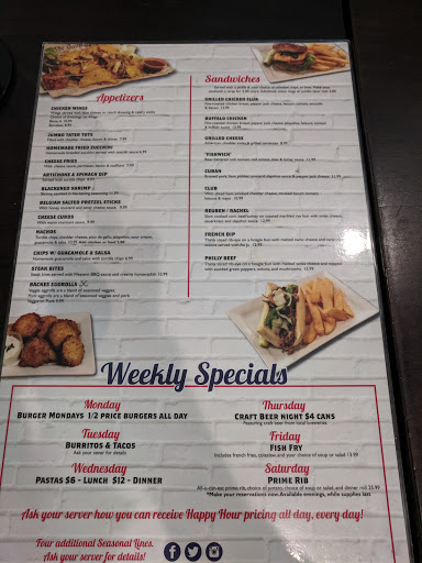 Excellent food and a great atmosphere! The wait staff is also awesome! I will definitely go back. Awesome to watch curling while sitting inside drinking a cold one or eating dinner.