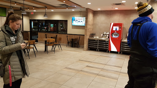 I stopped in around 9pm. Place was dead, nobody minding the register...I wasnt in a hurry so I just waited quietly...after a bit I was noticed and was served immediately. Ordered my food and grabbed a seat in the empty dining room. When it was ready the staff brought it to my table and apologized for not seeing me. So, the wait was annoying, but then, Ive never gotten table service at fast food either...with such polite service afterward, so they redeemed themselves.