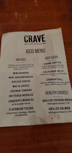 Somehow my experience at this place stripped me of my ecstatic, celebratory mood down to the bare bones of a dissatisfied and off-put patron. The environment was alright to sit down in if not a bit resonant due to the mall noise pollution, but that was not even a smidgen of the problem at hand. The service was in my face - which I understand to a point due to my allergies, but enough was enough - and the food that I ended up getting was incorrect. For most people this is not a huge ordeal, but for someone with allergies eating in public can be a life-or-death matter. I havent even begun on my roommates food. She received a large portion of sushi in a boat to which she was skeptical on whether or not it was the fish of last month. I was not happy and ended up getting sick after they fixed the mistake of my food (yes, sick from the food they switched my incorrect order to), and my roommate was still very hungry and had a bad taste. We left the restaurant very much dissatisfied and will likely never return to this or any location of Crave.