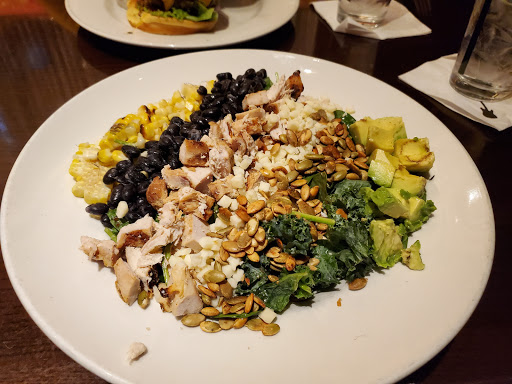 The service was wonderful. Our server was so nice. My dad is allergic to Gluten and he is deaf. The server knew sign language which was amazing and she helped us out with gluten free foods. Food was pretty good, really no complaints on that. Except when i was leaving i notices that they have a show kitchen where u can see them cook. Well some of the guys were not wearing hats or hairnets so imagine the hair that gets into the food that u dont see. And NOBODY was wearing gloves!! They went from cutting cooked chicken to touching raw chicken to touching buns. Totally unsanitary. Went to the front by the seaters and they said they really didnt know why they dont wear gloves. And i said i cant imagine the health department would like that. They said the health department is right upstairs! What in the world. What if a cook was sick? And hes touching the food that you are eating and paying for! Disgusting
