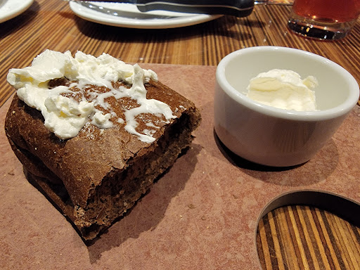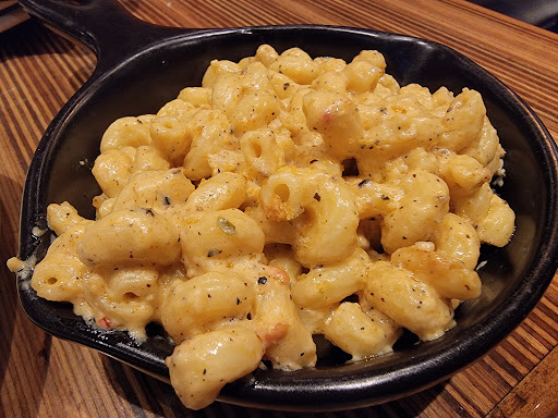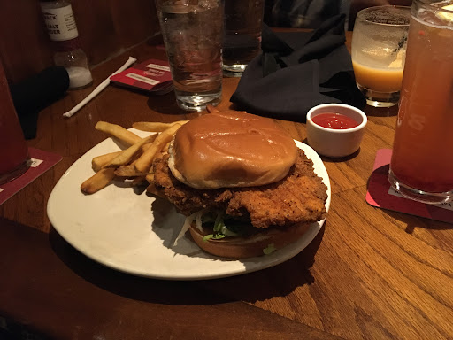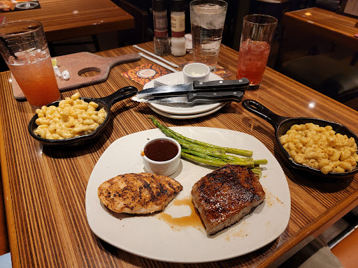 I was a little worried initially coming here: atmosphere appeared like it was going to be just like every other chain restaurant, therefore generic food that claims to be amazing. To my pleasant surprise, it wasnt. I had salmon, which was heavenly. Broccoli as a side was cooked perfectly and overall super enjoyable meal. My boyfriend had a steak and his biggest complaint was that the ranch dressing was bland. He also had mac and cheese as a side which was super good. I had a cosmo to drink which was super weak, and that was about $9, so definitely overpriced drinks. We were promptly served, and were in and out in about 1.5 hours. Overall, I would definitely recommend this restaurant and would return!