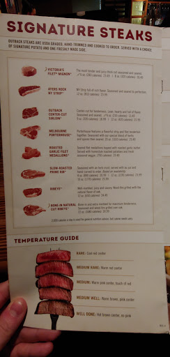 Pretty much never complain ... tonight on the way home I thought I would treat myself as it has been awhile since the EP Outback closed. I ordered take out and even splurged on the Large bone in Rib eye. Have eaten at a number of OBs over the years so figured it was safe. When I got the steak home it looked fine but then when I attempted to eat it instead of a well marbled tender piece of meat I had a medium rare steak that was almost un-carvable due to all the gristle. At least a 1/3 of this cut of meat had to be cut away before I could get to the edible part. I suppose since it was carry out the cook decided to dump a poor cut of meat off on the sucker in his car. I can count on one hand the number of times I have sent a steak back but this certainly would have been one of them. Jokes on me for ordering take out ... OB? jokes on you because I will never be back in your restaurant again. The most memorable part is today is my Birthday and I made the mistake of choosing you to splurge but I wont forget where to never go again! PS I have photos of the pile of gristle sitting on the plate with the remaining steak if anyone at OB gives a rip.