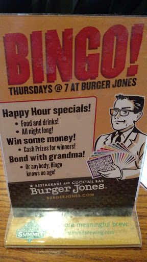 Ive tried numerous Burger places in Minnesota. And this one stands out among the rest in my oppinion. As I walked in I noticed the rustic look of the inside of the restruant it had a good atmosphere it was quiet or plain it was nice. It is similar to places like Fudruckers or Buffalo wild wings. So now lets get to the bare bones of it the taste of the burgers. My expectations were high and I wanted to compare it to Fudruckers. I ordered a simple cheese burger with red onions and applewood smoked bacon, with a side of fries. When the burger came it had a Burger Jones stamp on the bun itself which I thought was an interesting touch. It came with a knife in case I wanted to cut it up. Because I ordered the Double Jones it was almost a whole pound of meat. And the other cool aspect was you could customize your sand which with different meats and toppings. This place is good for anyone who is a avid burger enthusiast and a person who likes to customize your food. But remember this when you add toppings it adds to the price mine came up to almost 19 dollars so be prepared to pay around $40+ for two.