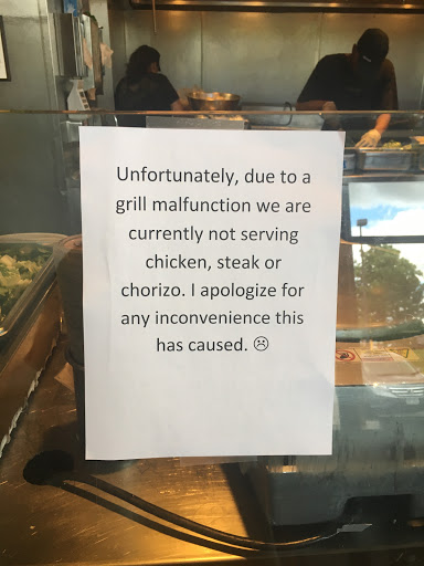 This location has always been painfully slow. Even though you are charged for double meat upon request, you dont actually get double meat. They give you whatever is left in the pan. I have only have had this issue at this specific location. We stopped going here, but after a year away I thought maybe things would have changed. Nope. The burritos are not like they used to be. They are small and very expensive. Once again they were out of steak which caused a backup and a long line. Then when one piece of steak was delivered it was split up between three entrees and my double meat was about 1 and 1/4 worth. Even without rice and beans the small burrito was over $11. Ripoff.