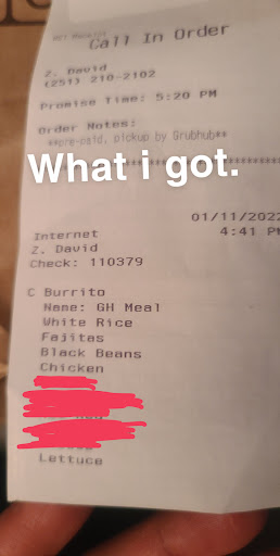 This Chipotle makes the smallest burritos out of any chipotle I have been to. I always order extra rice and everything else at this chipotle otherwise you end up with a small snack instead of a meal. Not impressed. I have also gotten the wrong ingredients put on my burrito and frequently see other people get the wrong ingredients put in because the person working is not paying attention and is completely zoned out. I realize this just depends on the person but I see it here more than any other chipotle. Today I did an online order for lunch and received someone elses online order. Didnt realize until I got back to my office and opened it up. Wish there was another one close to my office.