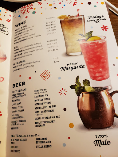 This was my first bad experience at any TGI Fridays. We did not wait long to be seated even though the restaurant was busy. It took awhile for someone to take our drink menu and I let our waitress know right away that I was a stripes member as my husband likes the chips and salsa. It took over 20 minutes to get the chips and salsa. When our food arrived (Bourbon Barrel Chicken) my broccoli was mushy and looked like they cooked spoiled broccoli. My husband ordered the flat Iron steak cooked medium to medium rare, and his steak was cooked rare with a cold Center. Our waitress only took the steak back leaving the rest on his meal on his plate to get cold while he waited for his steak to come back. When it did, it was still rare so not sure if his steak was put back on the grill. All I can say is "beware" if dining during their rush time. Slow food, or rushed food coming out of the kitchen.