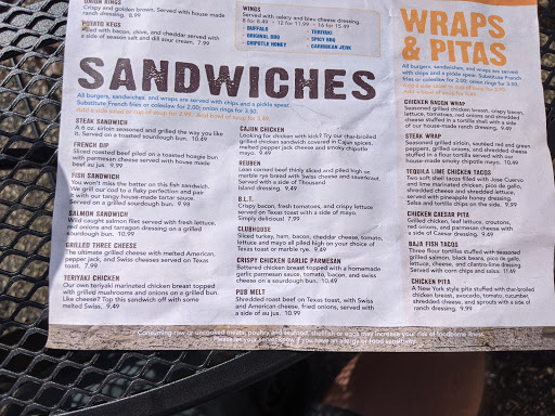 Atmosphere was very nice with old tin ceiling and brick wall. But that is where it ends. It was very loud with the bar half full. The food was sub-par. The nachos were below avarage. I had the teriyaki chicken sandwich, very bland and dry. I ended up putting ranch dressing on it from my wifes chicken strips. And her strips were over breaded but OK. You did get alot of them for your money however. Not so sure I would visit again.