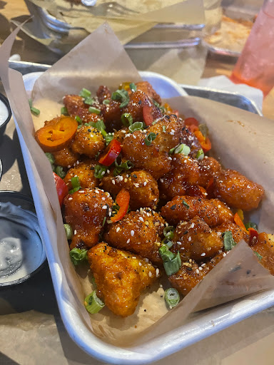 My family and I decided to come here for dinner after the movies. I dont expect much from a bar and grill but I certainly expect more than what got tonight. We decided to take-out our food, as the place was packed. The food was absolutely dreadful, and after seeing such a spectacular movie, this was a major letdown. Per my kids, the hamburgers tasted like someone took a handful of pepper and threw it on there. My chicken wings looked and tasted like they were pulled from a volcano. The mushrooms and potato wedges were flavorless and cold. If you want to come here to watch a game and have a drink, this is the place. But beware, your game day mood might be somber if you eat the food.