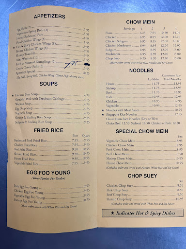 Ate there last Friday night and boy, has this place declined since even a few years ago. Lukewarm Jasmine Tea tasted and smelled like they got the water out of the fish tank, the Singapore Rice Noodles were indicated as spicy but wasnt... the whole dish was served lukewarm and there were only 5 other customers in the joint besides out table. Couldnt believe how bad it was!