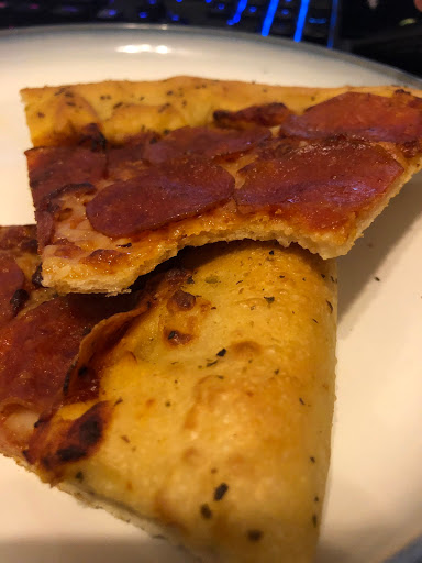 The food is as usual. The staff however could do some work. Walked in and wasnt tended to right away. Keep in mind I was the only customer within the store at the moment and there were two people tending the front. Told them I ordered online. Typically I dont care for everyday business fluff, but for a well known pizza place, its a bit off putting.