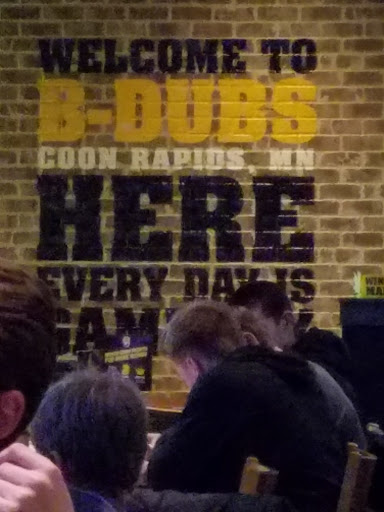 SUCESSFULL SERVICE, ALSO NEW REMODELING BUFFALO WILD, COON RAPIDS, ENJOY YOURSELF, LIFE IS TO SHORT FELLOWS. GIVE UP. LIVING DREAMS, BRING YOUR FRIENDS FAMILYS GENERAL ATT WIIIAM GANOZA. CUSTOMER HAPPY HOURS BUFFALO WILD. THANK YOU, HAVE WONDERFUL AWESOME DAYS BEGINNING.