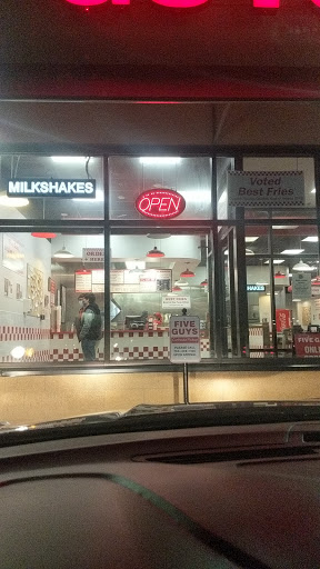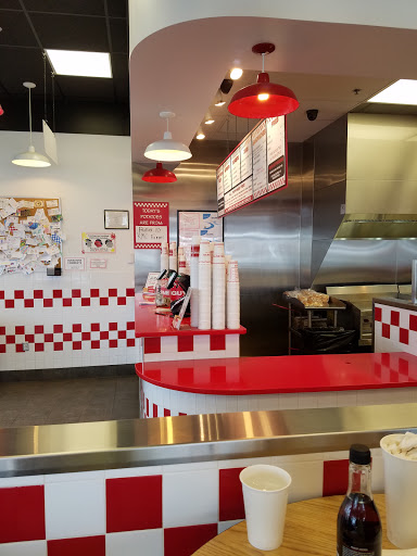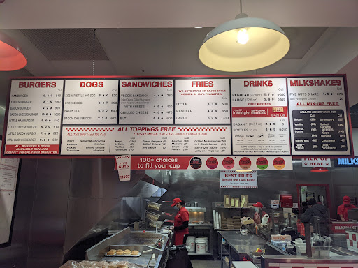 We were googling a place nearby to eat for my fiance, daughter and myself. We wanted yummy food, not necessarily a sit down fancy restaurant and not necessarily McDonalds. This ended up being what we found. At first it seemed a little pricey, but between the 3 of us we got 2 bacon cheeseburgers with all the free fixins we wanted, 1 BLT, and we shared 1 fry three ways, and each got a drink. The total was around 30 bucks. We all left full. The fries were amazing [especially when I added vinegar, salt added pepper to my portion] plus they fill up one cup of fries and dump another into the bag, the sandwiches were filling and delicious, and they have those machines where you can mix up any drink. Overall a delicious meal, fun atmosphere, SUPER filling food [my food baby had a food baby]. Thanks Five Guys! 10/10 would recommend for a burger joint!