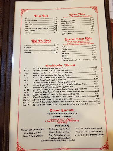 I have been getting take out there for over 25 years. From this location and the old one. they have wonderful soups and Fried Rices. Also love their beef and mushroom dish. I like the owners and take out staff are polite. I have only eaten inside 2 or 3 times.