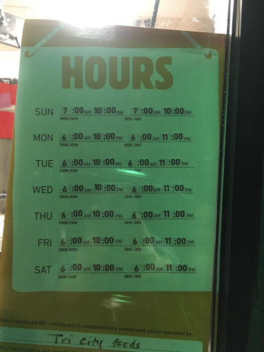 Okay at lunch time. For me in the narrow window i come through, it is perfectly fine; nothing wrong and nothing amazing. Nice to see a couple long term employees. Burger Kings in general seem to frequently forget the cheese on Rodeo Cheeseburgers, but this one hasnt missed once in the year Ive been coming here, so i go to this one of the two nearest me. Plus they honor the coupons from the phone app which brings the price down without having to carry coupons. They normally greet people, which is a positive. Opportunity for continuous improvement: instead of passive selling waiting for the order, sell it. Describe options and interact with the people.
