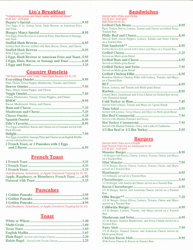 I first went to this place with a customer of mine. Ive been hooked since. This is one of those lost hidden places that only the locals know about. This is what I would call a "Greasy Spoon" place. If you dont know what that is, its a compliment! If you are looking for a burger be prepared. They are 1/2 pounders and delicious. The rest of their menu is great to. I love the commercials. They have now joined with another local business thats a chinese food place. Its like going into this old time small town cafe but you can also get great chinese food! Its great! To top it all of the portions are big and the prices are small. Im almost afraid to leave this review as I dont want to ever have to wait when I go there LOL!