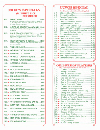 The people here are very rude and the quality of the food tends to be very poor/old. Customer service is horrible, we made a 40 dollar order and part of the meal was missing half the ingredients so I called the next day and told the lady on the phone and her exact response was I should have called yesterday if I had a problem. We will NEVER order again and we used to order once a week minimum for low quality food youd think the service Would be better, not the case here. Chun mee hands down they use fresh ingredients not frozen like Lins uses and the flavor is way better.