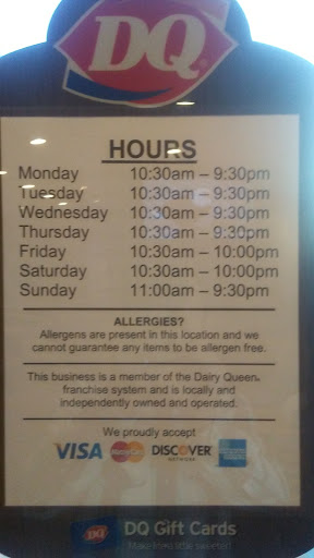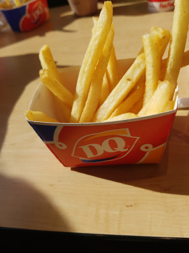 Never again. I dont even think this is an approved DQ. The chicken strips are like big McNuggets and the fries are also similar to McDonalds. They had no 1/4 pound burgers. The only DQ branded thing we received was the cups. Oh, and thanks for only giving me a small pop with my meal. Charge the extra $0.20 and give me what I expect to come with a meal! And youre in a hurry? That sucks. Im a former DQ employee and I could have done everything faster the two people behind the counter combined. Do yourself a favor and just dont.