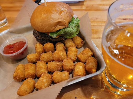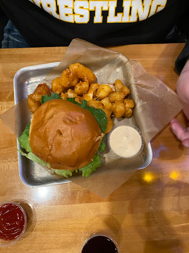 First off, the best thing about this place was the service. Our server Anna was awesome. She was very attentive and always made sure we were doing well. She alone deserves 5 stars. The food however was okay but not the greatest. I got the cheese curd burger with the cheese curd side. The portion size for the side was not worth the $4 dollars. We also got a side of jalapeño poppers. These were nothing special and were more like a deep fried sriracha cream cheese puff than anything. Not worth the money. The beer menu is pretty good as well but most of the options can be found at any other bar.