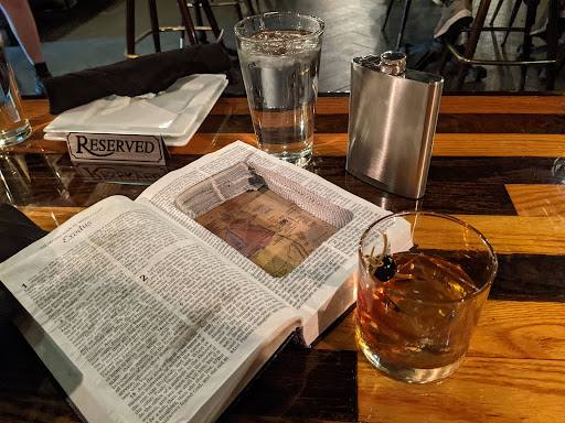 What an amazing hide away. First and foremost, the service was the best I have ever had. They will recommend drinks for you and if you dont like it, which hasnt happened to me yet, they wont charge you for it. What?!? You walk in and think, this place seems alright. Then you go in back and your mind is blown. Shelves to the ceiling that looks like it would be a grand study but the shelves are filled with different liquor. Their bartenders are amazing as well. I cant speak in depth for the food but the fries were good.