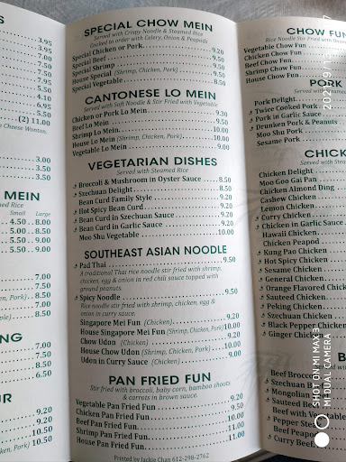 Best chinese take-out in Eagan. My favorite is the sesame chicken or their orange chicken. Its the only place around that does it right: Big chunks of all white meat chicken that is battered then deep fried till golden and CRISPY, then tossed in a sweet and tangy sauce. I always get the special combo which includes fluffy fried rice and a good eggroll. All that for about $7. Make sure you can bring it home quickly before the batter losses its crispy texture. Other notible dishes: chow fun, beef w/broccoli, pork fried rice.