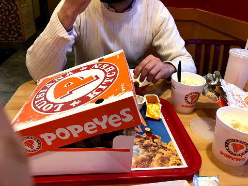 So sad. This is poorly run, was dirty and hard to eat at. Parking lot was empty and full of garbage. OUT OF EVERYTHING!!! From sauces, napkins to the fountain soda machine. The bathroom was dirty, out of toilet paper and the hand soap machine was open and broken. (So you can only guess how the staff was washin their hands and going to the bathroom)..Food was cold, and the owner helped me (A very nicely dressed persian man)...I LOVE Popeyes and the one in downtown Minneapolis in Uptown never misses what Popeyes is known for. If the owned cared a little, it would come back to him many times over..