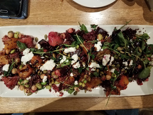 We live very close and have been quite a few times. Wed actually go more but its always so crowded for dinner and we cant have our kids waiting 25 minutes to get into a restaurant. They only take reservations for groups of 6 or more. The food is good. I dont think anyone of our group has ever complained in any of the trips weve been. Were particularly happy with the brunch. Also, if youre a vegetarian, the black bean burger is a great choice. Im not a vegetarian but I tried someone elses and was really impressed, especially with the tomato jam. Im not a big fan of the beer selection. Yes, there are quite a few beers, but for me many of them are boring. I dont hold this against them too much, though, as I think the selection would be fine for everyone except for beer snobs like me. Lots of spirits available. Prices are not cheap, but not outrageous. I was disappointed to learn that they dont have the Sunday NFL ticket. So while there are lots of TVs, if the Vikings game is on, dont hope to see the Packers. Lastly, service is always very friendly and helpful. Have never had the slightest complaint in that department.