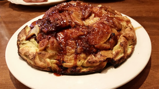Delicious, the huge apple pancake was so sweet and scrumptious, staff was extraordinarily friendly, and on the ball about coffee refills. Unfortunately the wait time was horrendous even for a party of 2, and even though we told them we preferred outside seating and they affirmed theyd make note of it, once a table outside became available they announced there was outside seating to anyone who wanted it rather than calling our party of 2, and some lady basically ran in to get it before anyone else could get it. She probably would have shoved handicap children and baby puppies out of the way to get there before anyone else. They should have called us since we specified we wanted to sit outside, instead of offering it up for grabs. We ended up having to sit inside which was fine - our server was very nice, and we had a 12 hr drive ahead of us so we were willing to take whatever just so we could eat and get on the road. If theyd called us to sit outdide, Id have given 5 stars instead of 4 as everything else was stellar about the place!