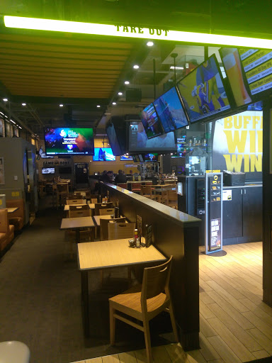 Its a buffalo wild wings. Nothing is exceptional, they serve acceptable bar food and drinks at fair prices. There are dozens of televisions on at all times so chances are you can watch whatever sporting event you like. Service at this particular location is always pretty slow. Not always poor service but almost always slow. Not uncommon to have to ask your server or bartender to help you. Im not the guy who is constantly waving my server down, but there are many opportunities for better service being overlooked. Most commonly you can sit there for way too long with an empty drink. Thats bad news in a sports bar. Often we have to catch the server or bartender as they are walking by to pay the tab. I see you seeing me sitting here with my card or cash in hand, empty drinks, and finished dishes -- take a guess what Im trying to do. The staff is pleasant but in general these basics need to be looked at by the leadership. Also funny that you can look back to reviews from a year ago and these were already common complaints that STILL havent been addressed.