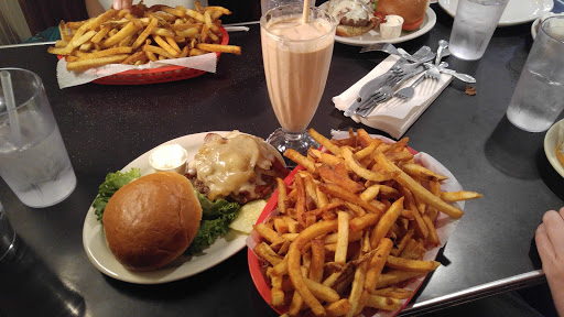 The food here is superb! Best place for burgers, fries and an old-fashioned malt. I love the diner style, super cute! Great location. Friendly staff. The only thing I would change is the server uniforms - the white has got to go, it feels very institutional.