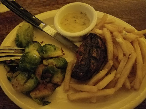 Last visit was a firm reminder of went we stopped going here. Had a group of 45-50ish people for work in a private room space. Drinks took forever to receive, so some people started just getting two when we got to see a server. Appetizer buffet options were tasty and we had a fixed entree menu to choose from with decent options. My appetizer plate was snatched up from in front of me with food still on it before we even ordered entrees. Or servers seemed in a hurry to get everybody out asap the whole time and were slow to ask if anybody needed anything. Entree plates ranged from burning hot to cool from sitting for a while. Bottom of my sandwich was soggy, three people at the table had barely warm meals, and it took for attempts for a girl at our table to get her side. With maybe ten people still enjoying their drinks and conversation, the lights were dimmed just above being off entirely, chairs scooted noisily across the floor, and several hostile attempts to remove my plate that I was still eating from. Asked Id there was another event after us and the was not. Id never seen service this poor for a corporate event with a large price tag until that night.