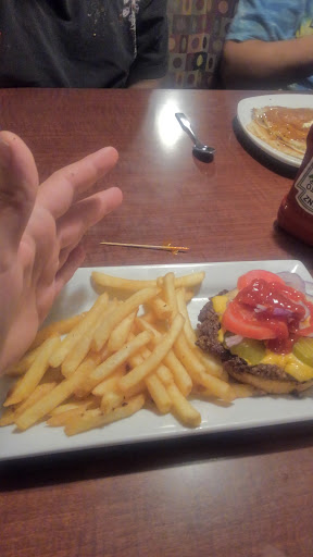 Good food awesome wait staff but proportions were small with the8 dollar burger hardly any fries Im leaving hungry other menu items not on the 2468 menu are expensive an the 2468 menu needs more burger options other then that is was ok the waitresses are the best here