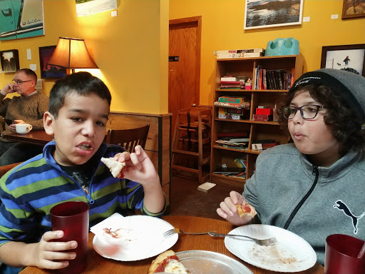 This place is great. Really cozy and interesting! Love to bring my son after soccer on Saturdays to share a soup and sandwich plate and sodas. Coffee is also good and they even have a variety of ice cream flavors. I also LOVE the toum sauce which we get on grilled cheese for lunch. They have a variety of family fun board games, cards, and books and we love the live music and the beautiful childrens art work that adorns the wall! :)