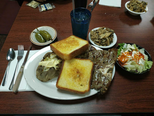Best place to get a good home style meal and for a very reasonable price! Theyre always packed, so prepare for a pretty good wait time. Believe me, its worth the wait! Best ribeye steaks Texas toast, and backed potatoes!!! Just remember to bring cash or check with your drivers license. NO CREDIT CARDS ACCEPTED. So keep that in mind as well!