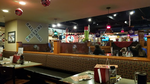 Love this Broadway! Great pizza and goo service. Kids can push a button to blow the whistle for the train that runs along the ceiling.