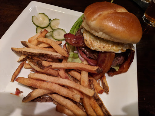 Very nice looking place. Medium light, music played overhead, didnt see a TouchTunes when I scanned the area. TVs over the bar. Booths, tables and what looks to be an outdoor seating area come warmer times. Sat at a booth, lots of space, tables move. No cushions, but surprisingly comfortable. Service was good. Happy hour is great and makes for a good value for what you get. Draft beer selection is good if youre not looking for the "mega regular" brewers as their list only had one. Menu was very high priced. Also, the descriptions contained unique sauces or combinations. Tried finding the menu online but was unsuccessful. The website is lacking basic functionality beside hours and some self-adverts as its difficult to use. I would come here again for happy hour, but not for appetizers or a meal.