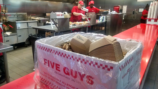 For you that stil dont know, Five Guys Burgers and Fries is a place where you can eat a great burger that can be personalized in almost "infinite" ways. Fries are great and strictly with the peel! This location in great like the people that work there. While you wait for your order (yes, they start to make it as you order at the cashier), you can enjoy free peanuts. Kids can also make some draws and hang them on some cork board in the location.