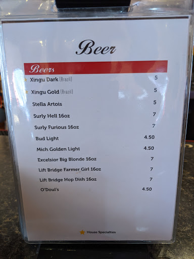 We are a half-American half-Brazilian family, and were excited to learn of a new Brazilian restaurant in the poorly-served MSP market. We visited once in the Spring of 2010, and just recently in September, 2010. The place is decorated nicely, with a modern look, and MPB Brazilian music playing in the background. The owner greeted us and took us to our table for lunch which was nice, and was initially very friendly, although he switched to perfunctory after a few problems, like forgetting to place my appetizer order. We had been forewarned that the portions were small, and so were not surprised when this turned out to be the case. The picanha (barbecued steak) looked like about 6 ounces after cooking. The sides, eg faroffa (toasted manioc flour) and beans were really miserly. From the appetizer menu, we tried and loved the bolha de bacalhau (little fried balls of potato flour with cod fish and herbs). The pastels (Brazilian type of thinly-stuffed deep fried empanada) were mediocre, filled with more creamy cheese than anything, shrimp for example. There is a serious issue with freshness of wine. The wine list is impressive for a place like this, with probably 40 different bottles on offer. Amazingly, every wine was offered by the glass as well as by the bottle. Hello! There is a reason that restaurants offer only a limited number of wines by the glass - you cant serve days old wine! With 40 bottles, unless they are throwing out dozens of bottles every day, there is no way that a small place with 10 tables or so can possibly be serving fresh wine by the glass. Unfortunately I didnt put 2+2 together, and we ordered two different Malbecs: Colores del Sol and Conquista. One was declicious, the other had turned half way to vinegar. It had clearly been opened for several days. Other freshness issues: there was just a hint of rancid oil in the farofa. And they operate a small store with Brazilian products next to the restaurant. We noticed that many products were months past the stale date. This tells you something about the attitude to freshness.