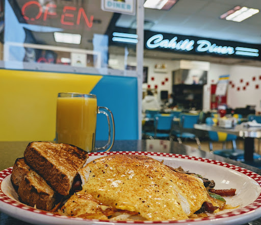 This was my first time at Cahill Diner, although Ive been to Zes Diner many times and i know theyre owned by the same family. The service is just as good, and the food just as delicious. Gyro omelet is happiness on a plate.