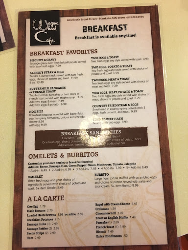 Wagon Wheel Cafe is one of Mankatos hidden gems. The prototypical old-fashioned diner, you wont be sure how the Wagon Wheel has made it untouched into todays hustle-and-bustle world, but youll be glad it did. Breakfast and lunch only -- and be sure to bring cash or check!