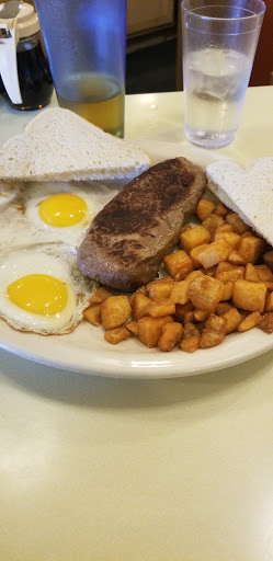 The Wagon Wheel is a great place for breakfast. I am not sure if they serve lunch but they are open 6 AM - 4 PM. You can crab two eggs, ham, sausage or bacon, and toast for $2.50. Food was really good and service was fast. Our waitress didnt check back with us but it was that kind of service. If you needed something you just "hollered." The set-up is oldschool with booths and a bar at the front and plenty of chairs in the back. At the booths you can play table music for $.25. I plan to go there at least once a week!