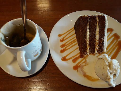 Id rather give it 3.5/5, but I like to round up. We found this restaurant on TripAdvisor, where it was well-reviewed and listed high on the Twin Cities restaurant ranking. The hostess and waitress both apologized repeatedly for the long wait, which was only about 20 minutes and not that bad in my opinion. Maybe its usually much busier. The restaurant was quite open, which helped with the noise level - there seemed to be a lot of families there with small children, but they never bothered us. After taking our drink orders, we had to wait a while for the waitress to return, and she was a bit absent for most of the meal, perhaps due to how busy it was. The cheese curd appetizer was very good, especially the sauce (which is a little spicy). We tried the chicken and waffles and the duck with polenta. The chicken and waffles was very heavy, and we were disappointed that a restaurant so well-known for its breakfast didnt use real maple syrup. The duck, on the other hand, was very good, if a bit over-salted. At the end of the meal, we got a slice of chocolate cake, which was HUGE and too much for three people after our meals, even though we each only ate half of our food. I might go back to try their breakfast, but not for dinner.