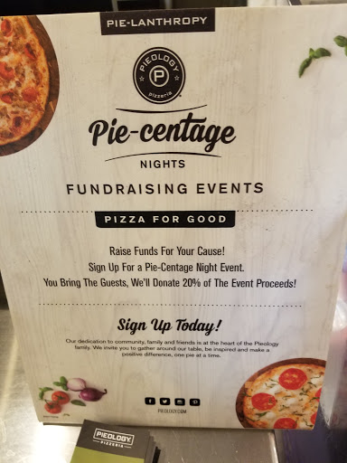 Love pieology! Great pizza, comes in one size. Fair price and doesnt cost extra for additional ingredients. Its my favorite pizza place.