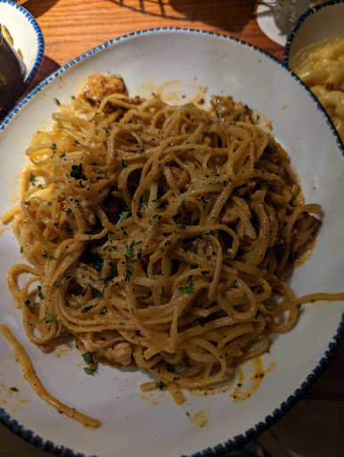 To start out called and asked if they had a lobster pasta. Julie could not answer, put me on hold for six minutes. Got her manager (six minutes later) then took my order for pick up. I ordered the lobster pasta, came to pick it up. Noticed that my salad was not in the bag. Went back to get the salad, Kayla informed me she was not the one who took my order and was unapologetic. Proceeded to get my food home. The toast seemed to be old (could not even bite into it) pasta was dry, I had them sub for alfredo sauce and it seemed that there was no sauce on it. I was charged $25.00 for what looked like a kids menu portion, not to mention the inedible salad. I should have stayed home and had better meal. Wasnt worth the 40 minute round trip drive.