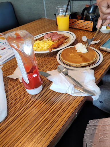 We had a gift card that we used. I ordered a blueberry short stack and they were horrible. I sent them back and Rozie, our waitress brought me another pancake. Rozie was awesome. She was very attentive. She needs to change jobs and work at a restaurant that she can be proud to serve their food. I cant image having to deal with what she does.. We left her a nice tip since she handled things amazingly. It wasnt her fault the food was terrible. The second pancake was ok, for having pancake in their name I expected a fantastic pancake, not so much. The restaurant appeared dirty. The food took a long time to get. We will not be visiting IHOP again. It was expensive for what we got. Whoever put a single dollar sign for price must have done it years ago or they got their meal free. We saw one couple talk to the manager and walked out without ordering and they already had their water.